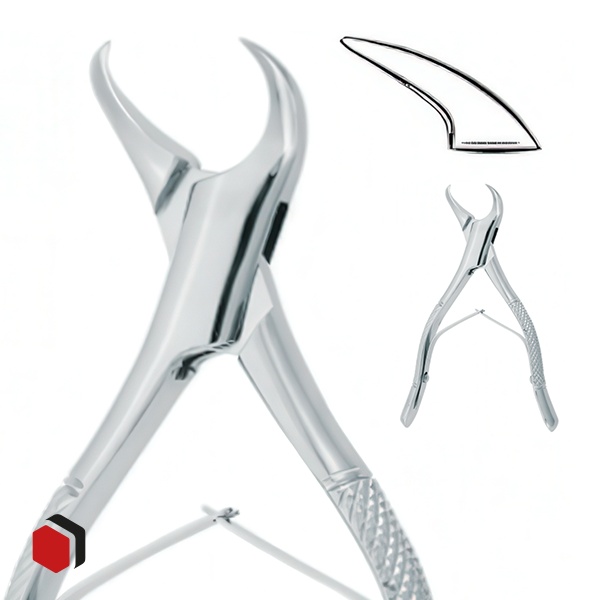 3. Моляры: • Щипцы для моляров верхней челюсти: Байонетные или S-образные щипцы, которые обеспечивают удобный доступ к задним зубам. • Щипцы для моляров нижней челюсти: Имеют изогнутую форму и широкие щечки для надежного захвата крупных зубов.